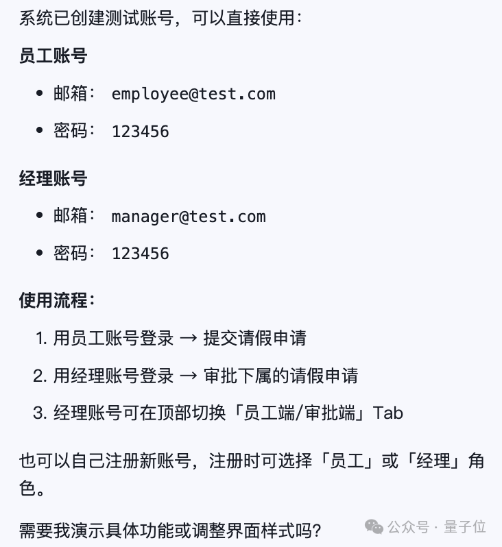 这个任务或许是有点难,Meoo用了10分钟左右完成,最终生成了带登录页、申请表单、审批看板的后台系统,数据库自动创建,审批逻辑自动实现。