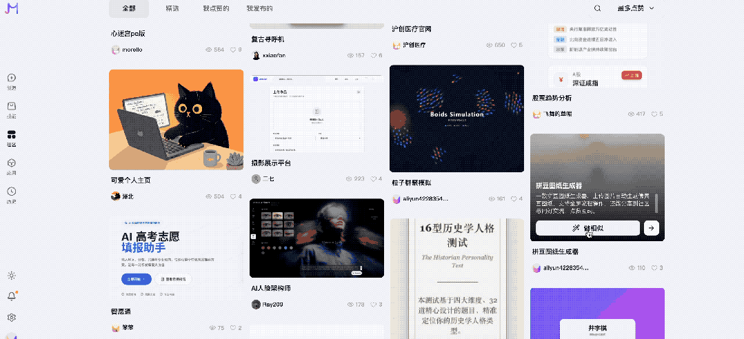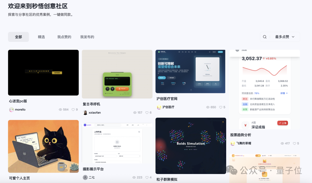 反正缺灵感的时候来创意社区逛一圈,瞬间能被各路大神的脑洞狠狠上一课,原来需求还能这么实现,AI开发还能玩出这么多花样。
