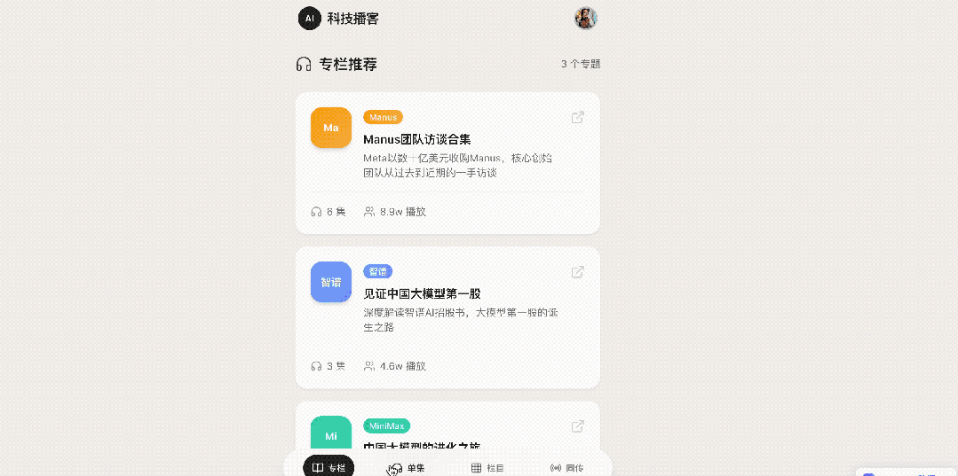 除此之外,我还看到了一个个人播客推荐应用,相当于一个收藏夹,别人访问后能直接点击链接跳转收听。