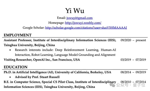 量子位注意到,吴翼在清华大学交叉信息研究院的教职信息已被撤下。