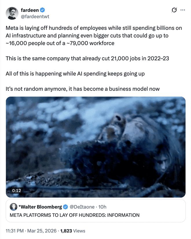 这表明裁员已成为AI时代的一种全新商业模式。