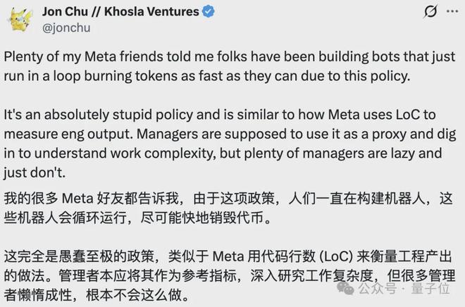 一名投资界人士指出,他认识的一些Meta员工为了消耗更多的Token,还专门构建了一些循环运行的机器人。