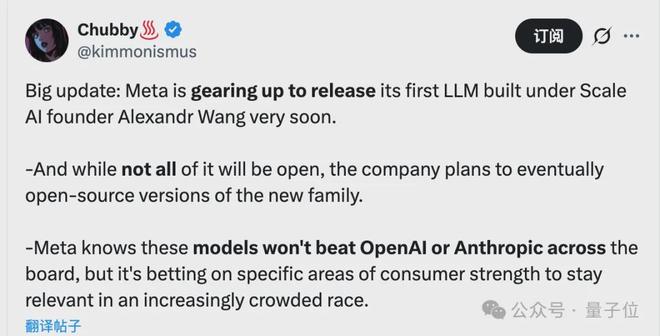 不过,由亚历山大王主导开发的第一个新模型家族,最终决定重新回到开源路线。