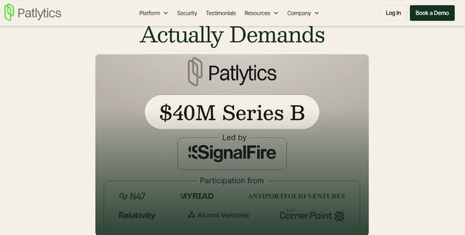 像Patlytics这样的玩家,不再试图覆盖所有法律问题,而是围绕专利这一高价值场景,重构数据、工作流与决策链条。AI不只是助手,而是嵌入其核心流程。