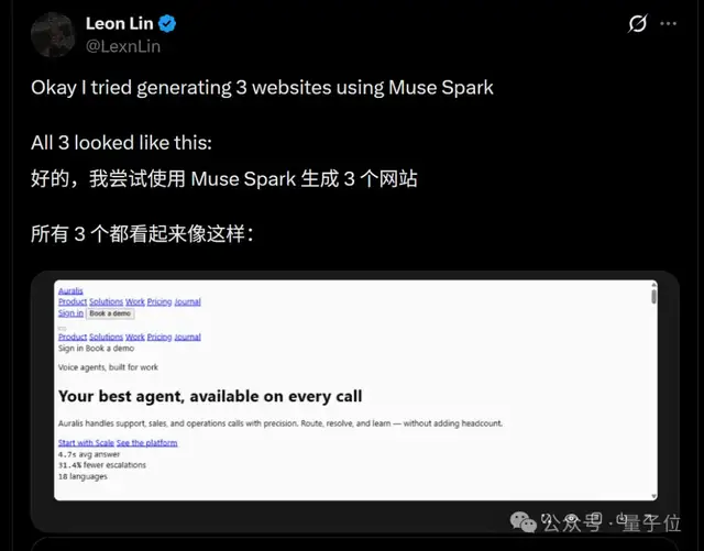 这一结果也与Muse Spark团队的自我评估基本吻合。