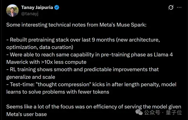 关于Muse Spark如何实现这一突破,Meta还详细介绍了背后的训练细节。