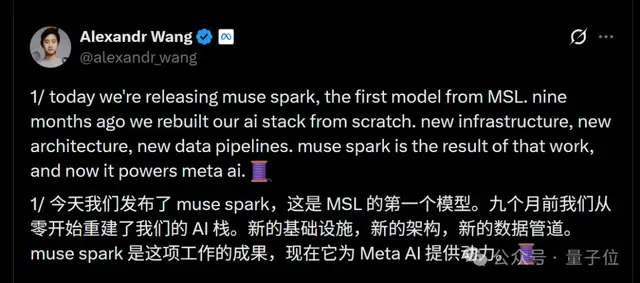 亚历山大王领导的团队在短短九个月内完成了对Meta所有AI技术栈的重建工作,并成功推出了超级智能实验室的第一个项目:Muse Spark。