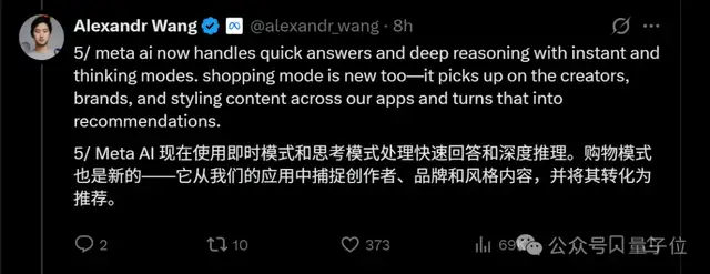 亚历山大王表示,这款模型会根据用户在ins、Facebook和Threads上的偏好信息提供个性化的购物建议。