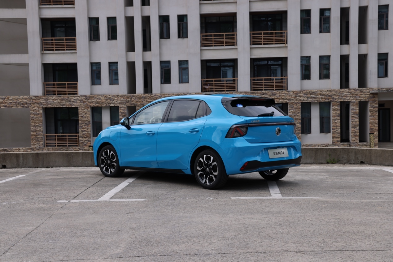 从侧面来看,MG4采用了长轴距和短前后悬设计,不仅增加了内部空间感,提高了乘客舒适度,还提升了车辆操控性能。同时,这种布局让整车看起来更加协调美观。