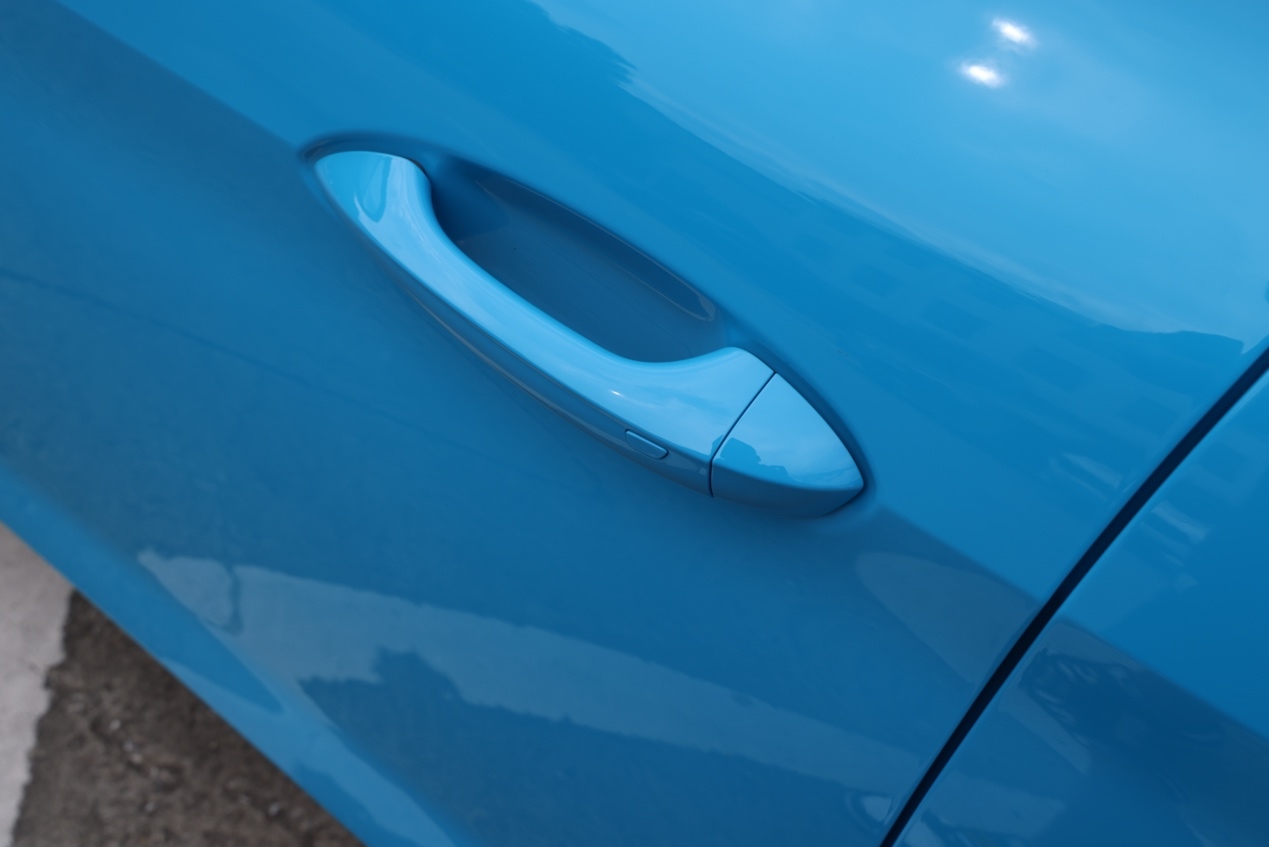 在现今的汽车市场上,隐藏式或半隐藏式的车门把手越来越常见,而MG4则保留了传统的门把手,并将充电口设置在前翼子板上。新车尺寸为长宽高4395x1842x1551毫米,轴距为2750毫米。相较于现款车型,其长度增加了108毫米,高度提高了35毫米,轴距也增长了45毫米。