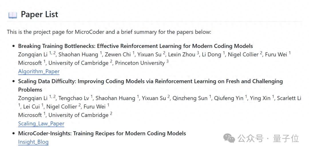 微软亚洲研究院与剑桥大学、普林斯顿联合推出MicroCoder,从算法、数据、框架、训练经验四个维度全面升级,在最新代码测试集上取得明显提升,并从七个方面开源了34条训练洞察。