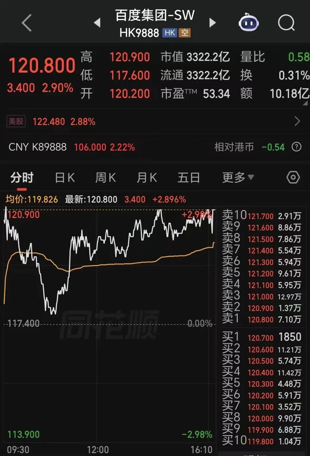 在3月10日的交易中,MiniMax公司的股价大幅上涨超过22%,其总市值达到了3826.4亿港元,超过了百度公司。同一天,百度公司的股票收盘时上涨了2.90%,使其总市值达到3322.2亿港元。