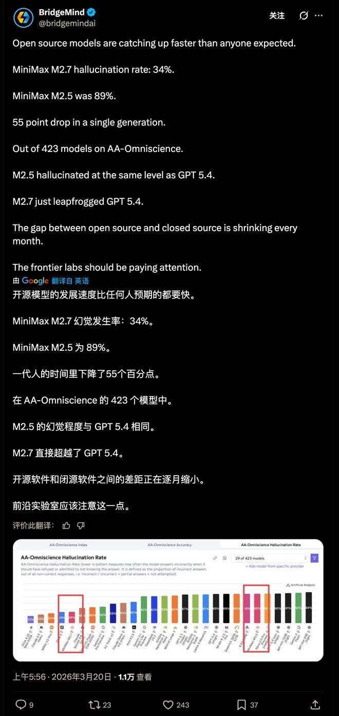 此次MiniMax M2.7的发布,与之前M2.5版本发布时的情况如出一辙,热度席卷全球。
