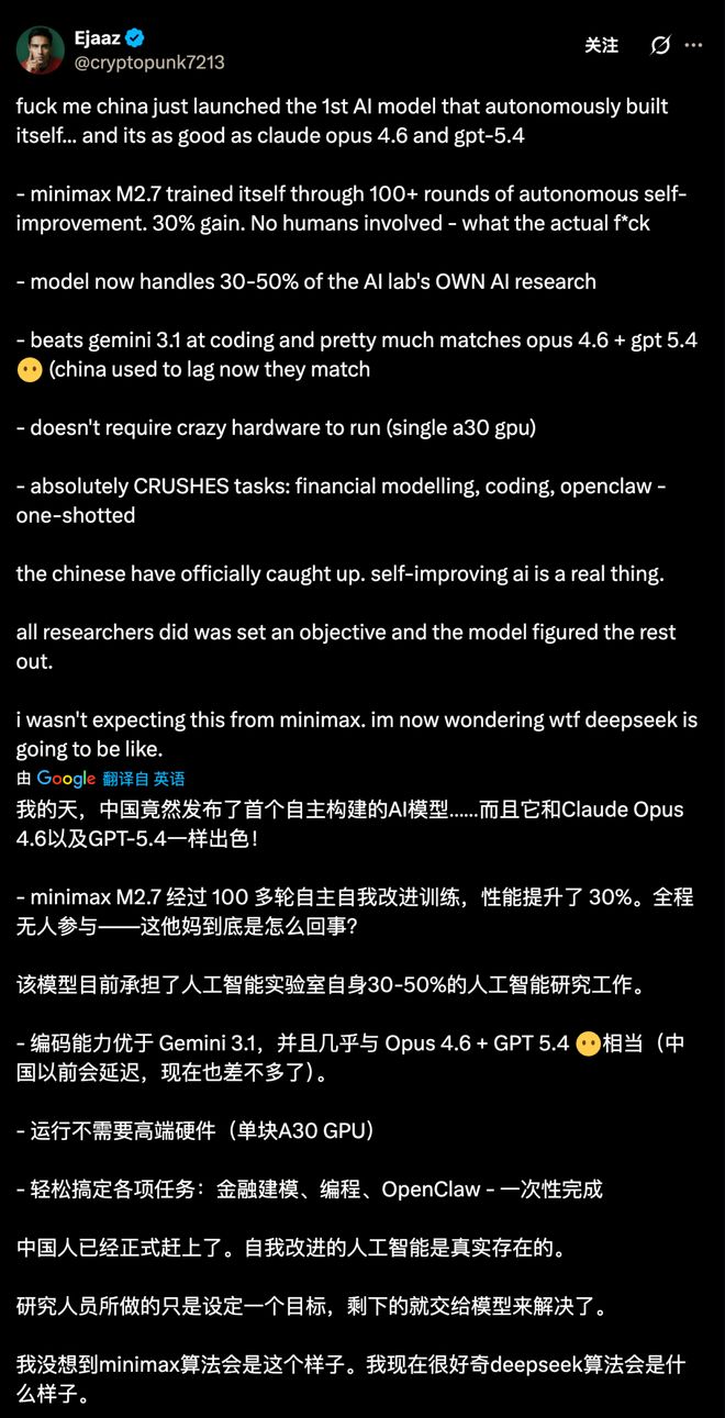MiniMax M2.7的发布,让开发者们感到震撼。