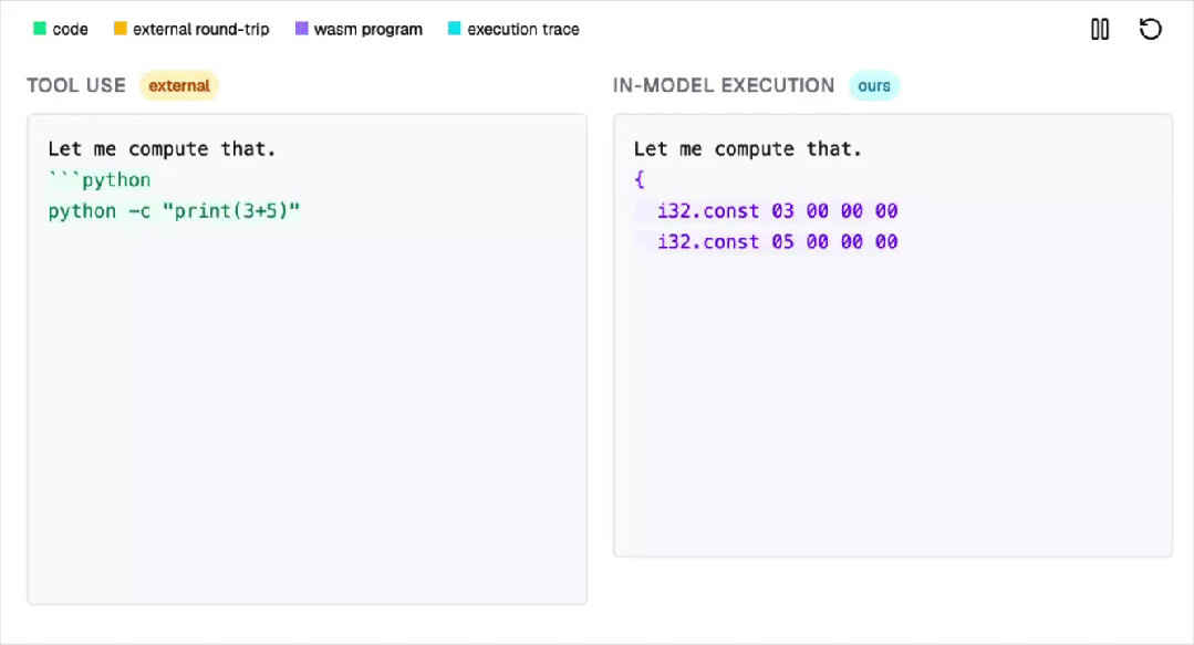 在Christos Tzamos的系统中,AI模型生成的智元代表了虚拟机的动态状态,包括指令指针、内存、栈操作、算术运算和控制流。
