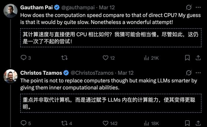 虽然LLM的计算速度无法与CPU媲美,但这项技术的关键在于赋予了LLM内在的计算能力,使其更智能化。