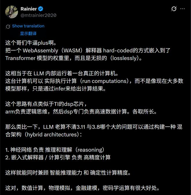 当Transformer内部开始运行真正的程序,LLM就不再只是一个概率模型,而更像一个由推理系统和计算引擎组成的混合体。