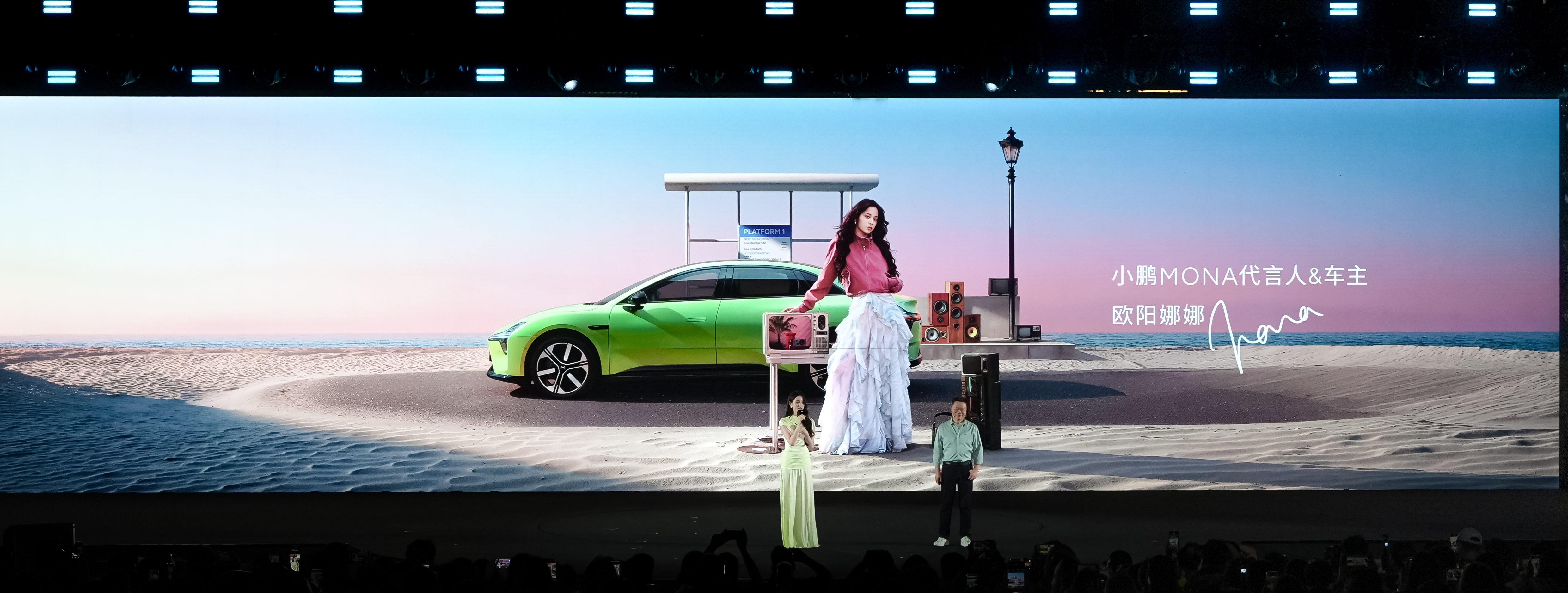 新车型上市当晚,“LET’S MONA!”为主题的派对在小鹏集团举行,打破传统发布会模式,转变为一场迎合年轻用户喜好的潮流活动。现场邀请了欧阳娜娜作为代言人和车主出席,并与小鹏汽车董事长兼首席执行官何小鹏进行了深入交流。欧阳娜娜分享了她使用2026款MONA M03的智驾体验以及女性友好的配置,同时带来了她的新单曲《随时》在活动中的精彩演出。