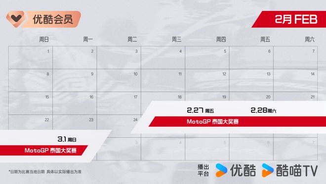 从3月开始,MotoGP巴西大奖赛、FE电动方程式马德里站以及GT世界挑战赛澳洲杯第一轮将在2026年陆续拉开帷幕,预示着赛车赛季的正式开启。优酷体育将全程直播这三项赛事,让车迷们感受每一个激动人心的瞬间。