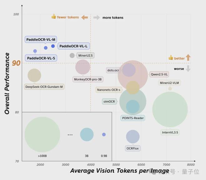 结果,视觉Token数量只有竞品的1/3到1/2,精度反而更高。如前所述,在OmniDocBench V1.5权威榜单上,PaddleOCR-VL以92.62分的综合成绩登顶全球第一。