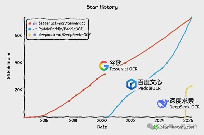 Star History显示,GitHub PaddleOCR Star数自2024年起呈现加速增长态势。