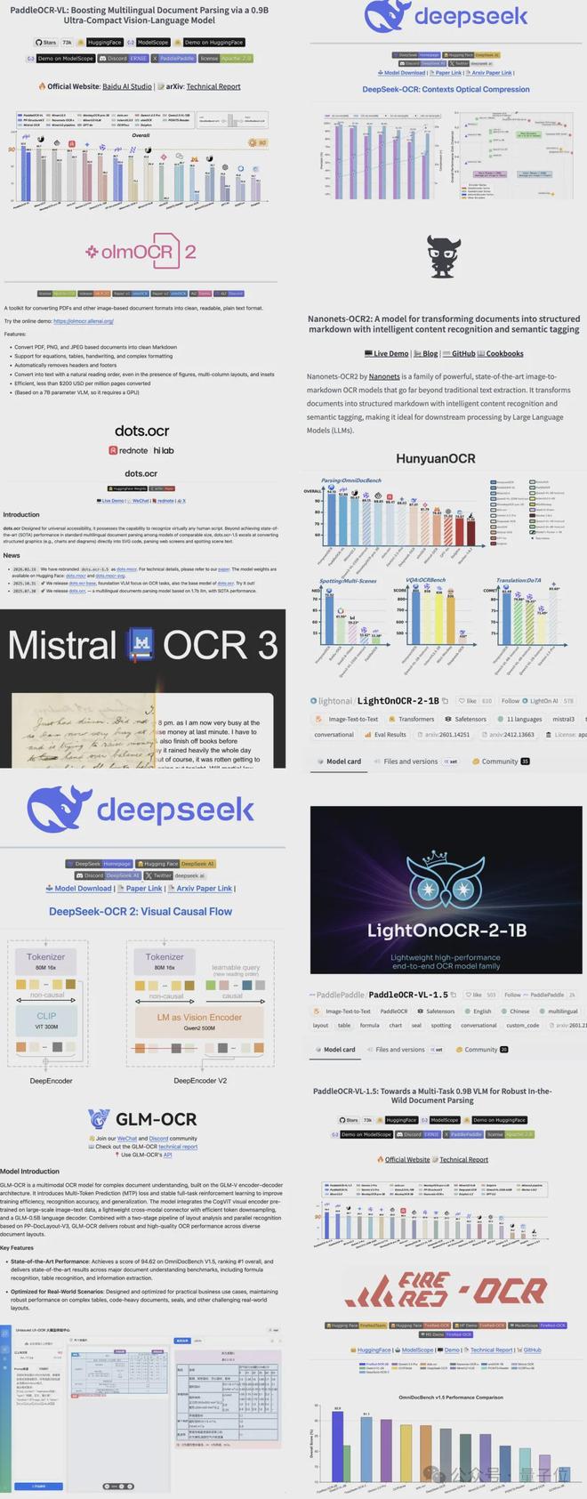 2025年10月,百度PaddleOCR-VL、DeepSeek-OCR、Allen AI olmOCR-2、Nanonets-OCR2-3B、dots.ocr.base几乎同时发布。
