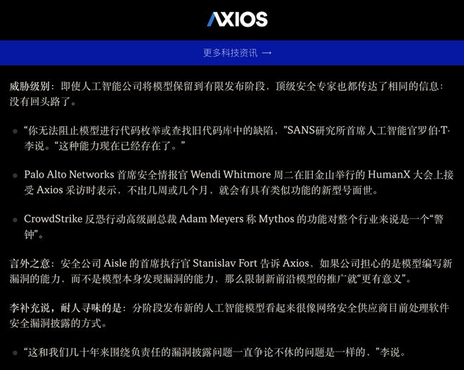 而且最讽刺的是,真正把这件事推到公众面前的,还不是黑客真的用它打爆了什么系统,而是模型公司自己先害怕了。