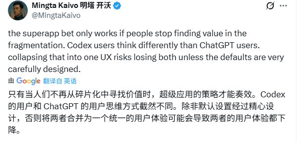 但也有人担心,Codex用户和ChatGPT用户的思维方式完全不同,强行整合可能会导致两边的体验都下降。