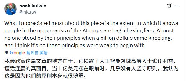 网友(@MattZeitlin)敏锐地指出了这场闹剧背后更深层的悲哀:“如果那些声称要打造超级智能的顶级大脑,在现实中却总是被聪明、野心勃勃却谎话连篇的奥特曼当猴耍,我们又凭什么相信他们能驾驭并对齐未来的超级智能?”