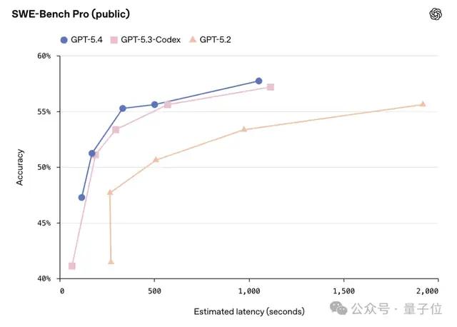 此外,对于对延迟要求较高的场景(在这种场景中,人们倾向于不进行推理操作),GPT-5.4 比其前辈版本有了进一步的改进。
