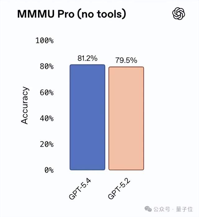 在MMMU-Pro视觉推理测试中,GPT-5.4取得81.2%的准确率,高于GPT-5.2的79.5%。