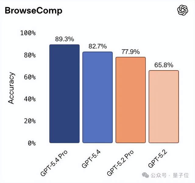 在BrowseComp测试中,GPT-5.4的成绩达到82.7%,而GPT-5.4 Pro达到89.3%,比GPT-5.2提升17个百分点。