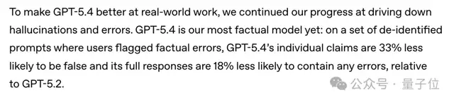 从官方介绍中能初步感觉到,GPT-5.4是个极其讲求事实的模型,其事实错误概率比前代降低了33%,大大缓解了用户对模型幻觉的焦虑。
