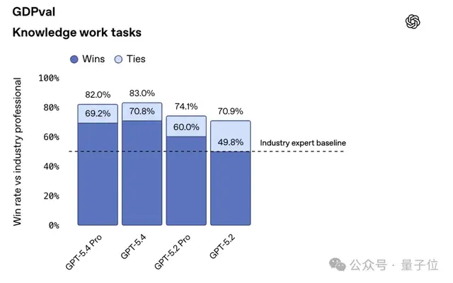 在处理职业场景中的任务时,GPT-5.4表现出色,在多个基准测试中得分超过80%。
