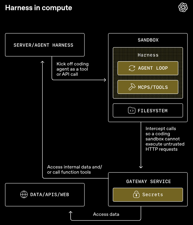 控制框架运行在可信赖的基础架构中,处理模型调用、审批和追踪;而计算环境则独立于沙盒负责读写文件等操作。