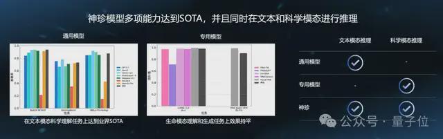 不同于学科专用模型缺乏多科学模态信息融合,也不同于文本统一式模型造成科学信息失真,神珍模型实现了原生多科学模态输入与生成。