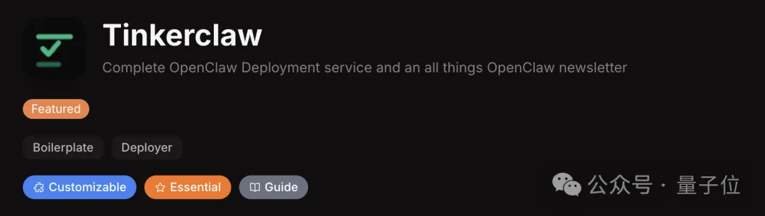 第五名是Tinkerclaw,它被分类为代码模板和部署工具类别。