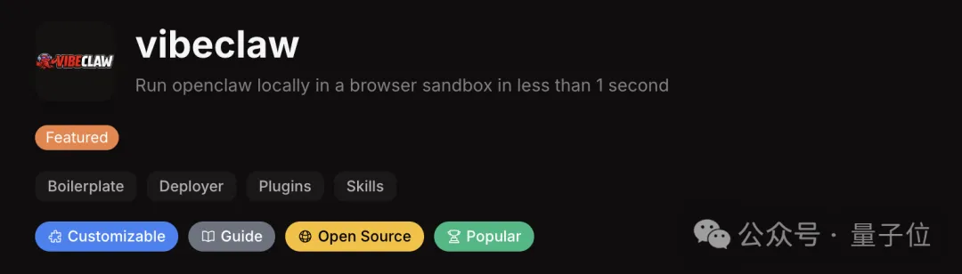 第四位是vibeclaw,号称能够在1秒内在浏览器沙箱中运行OpenClaw实例。