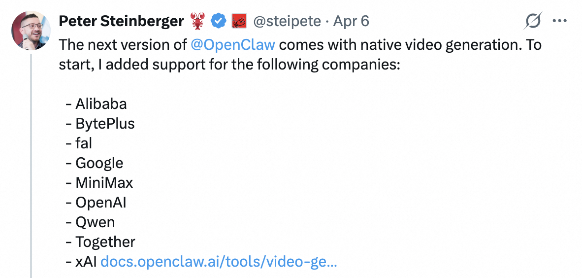 4月7日,消息指出,“龙虾之父”彼得·斯坦伯格在社交平台宣布,下一代的OpenClaw产品将会集成视频生成功能,并且会首先提供阿里千问大模型的支持。据业内信息显示,在过去的一周里,阿里巴巴接连推出了多款新的人工智能模型,包括Qwen3.6-Plus、Qwen3.5-Omni以及Wan2.7-Image和Wan2.7-Video等,这些产品覆盖了编程、代理服务、全模态识别、文字转图像生成及视频制作等多个领域,在全球的人工智能社区引发了广泛关注。特别是千问3.6Plus模型,在OpenRouter这一全球最大规模的大模型API平台上连续多日占据榜首位置,并且成为该平台首日调用量突破1万亿Token的首个模型。