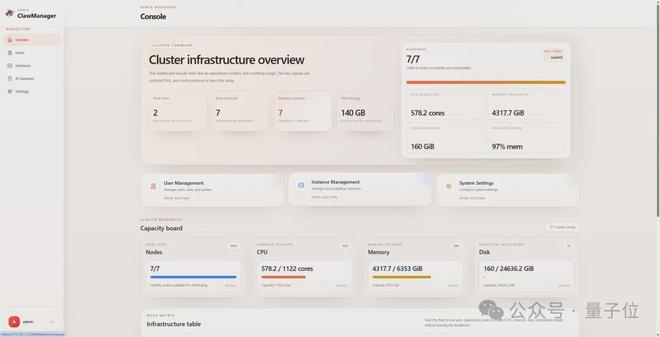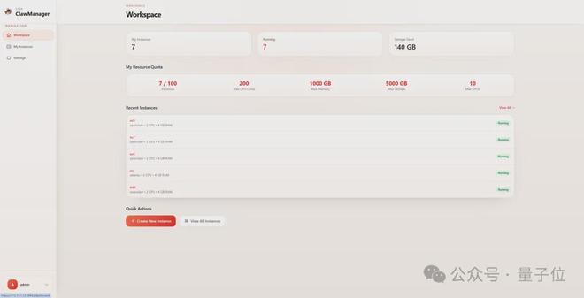 管理员登录后,所有用户的OpenClaw实例状态都汇聚在同一个控制台,在线、离线、资源占用一目了然。