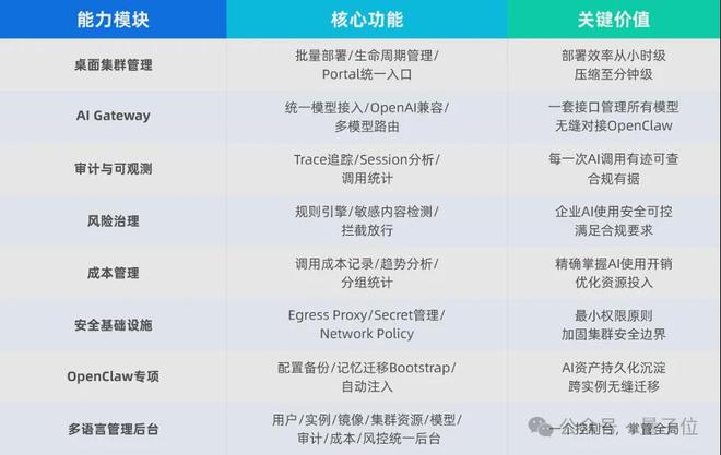 作为业内首个企业级OpenClaw服务器部署管理方案,它的定位很清晰,就是要补齐OpenClaw缺失的那一层企业级管理能力