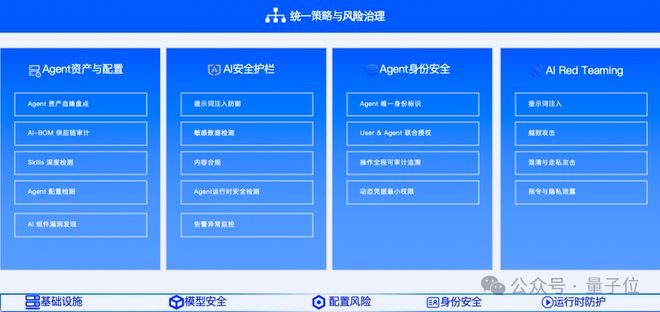 - 其二,针对Skills供应链风险,提供 Skills 前置拦截与扫描能力,为恶意插件增设防火墙,在安装前完成静态与动态双重风险检测,从源头堵上供应链漏洞;