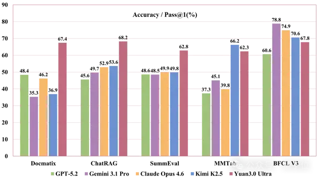源Yuan3.0 Ultra在设计上引入了混合专家(MoE)架构,并针对企业应用和智能体工具调用进行了优化,在多模态文档理解、检索增强生成、表格数据分析以及内容摘要等方面表现出色。
