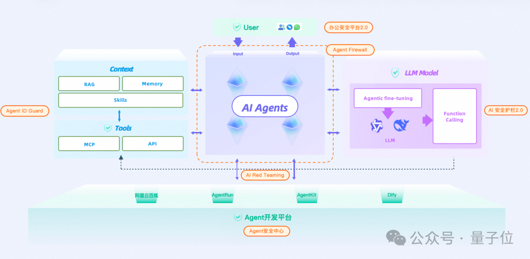 - 环境层面,为Agent部署独立的沙箱运行环境,即便单节点被入侵,也只能在沙箱内运行,无法实现风险扩散,更影响不到企业的核心业务系统。