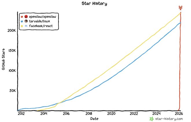 从项目的历史来看,OpenClaw仅用60天就实现了超越React十年积累的Star数目标;