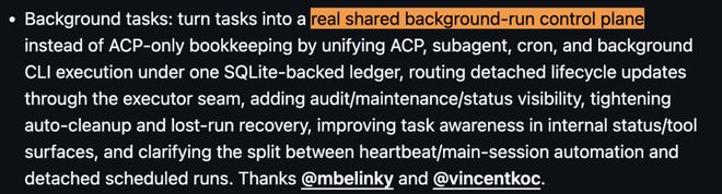 后台任务管理面解决了调度问题;ACP语义审批收紧权限管控;多渠道能力继续扩展,这些措施共同提升了OpenClaw的整体治理水平。