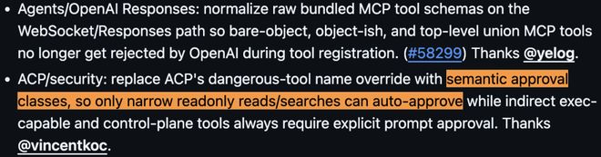 此改动针对的是ACP审批链路,并非OpenClaw整个安全体系的切换,但它有效地堵住了最大的权限漏洞。