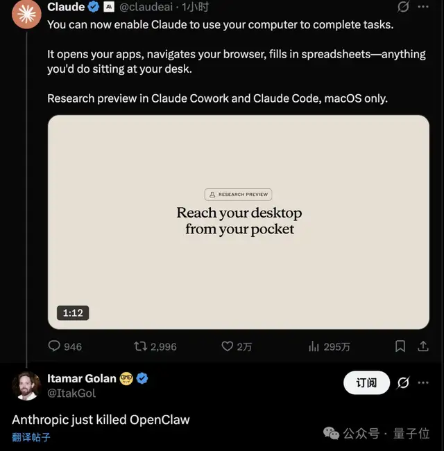 这是Claude Code最新升级Computer Use能力的公告底下第一条热评。