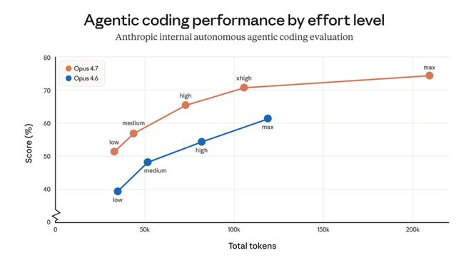 Opus 4.7 还换了分词器(Tokenizer),同样的输入可能会多出大约 1.0 到 1.35 倍 Token,高 Effort 下输出 Token 也会增加。