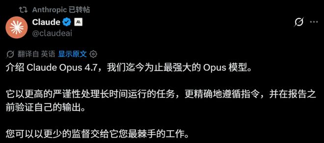 从 Opus 4.7 这次发布能看出,Anthropic 眼下押注的方向已经很明确,长任务执行、视觉理解、工具协同、少监督交付,这几项能力正在被打包成下一阶段的大模型主战场。